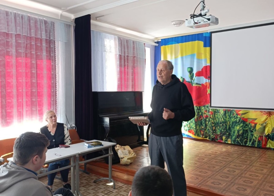 26 вересня 2025 року в Шевченківській гімназії відбулася надзвичайно пізнавальна та душевна зустріч з Володимиром Миколайовичем Гузієм – краєзнавцем, автором книг «Золота очеретина», «Про золоту очеретину», «Віра, Любов, Надія», «Жить весело» та багатьох інших.